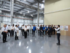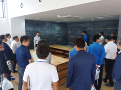 希望者約40名は早朝からバスに乗り合わせて現地入りし、工場や事務所内では、現場所長を務めた建設事業部の社員らが建屋と設備について説明しました。
