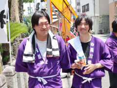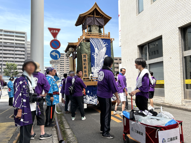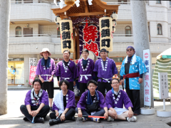 長濱神社の夏季大祭で行われる山車と神輿の行列に、江藤産業の有志が参加しました。