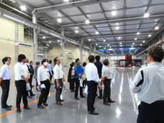 希望者約40名は早朝からバスに乗り合わせて現地入りし、工場や事務所内では、現場所長を務めた建設事業部の社員らが建屋と設備について説明しました。