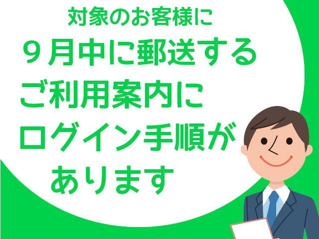 ・9月中に郵送にてお届けする「ご利用案内」をご覧になり、「web検針票」にログインしてご利用ください